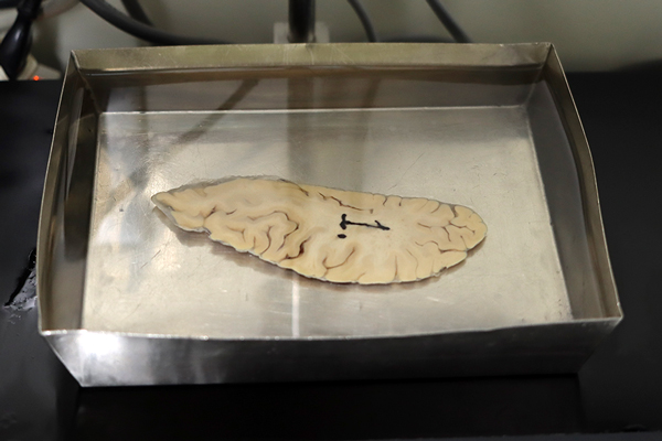 周りのパラフィンが完全に溶けるまで60度の溶融器に置く。 (解析室では一晩置いている) |